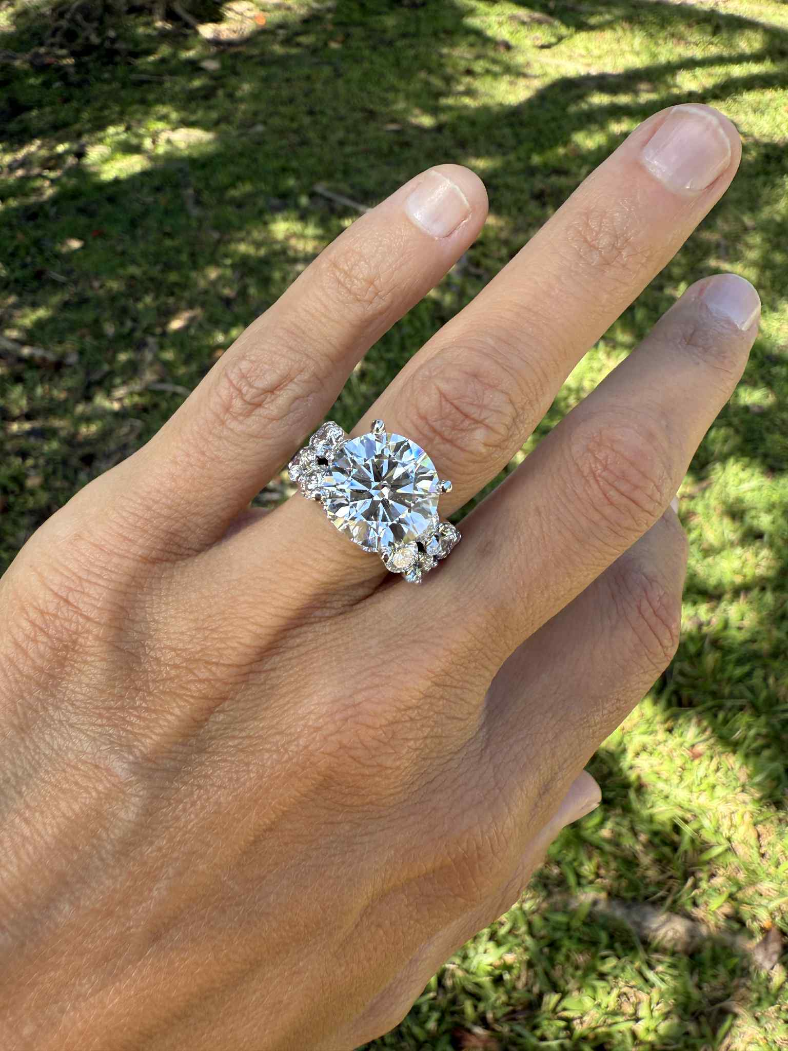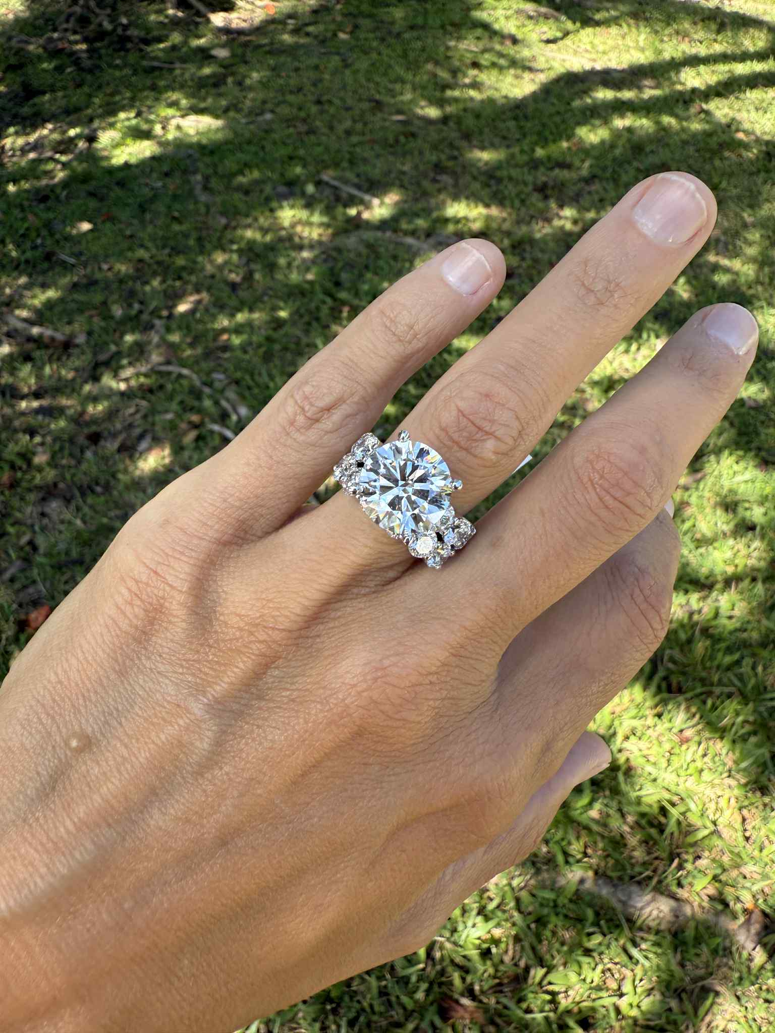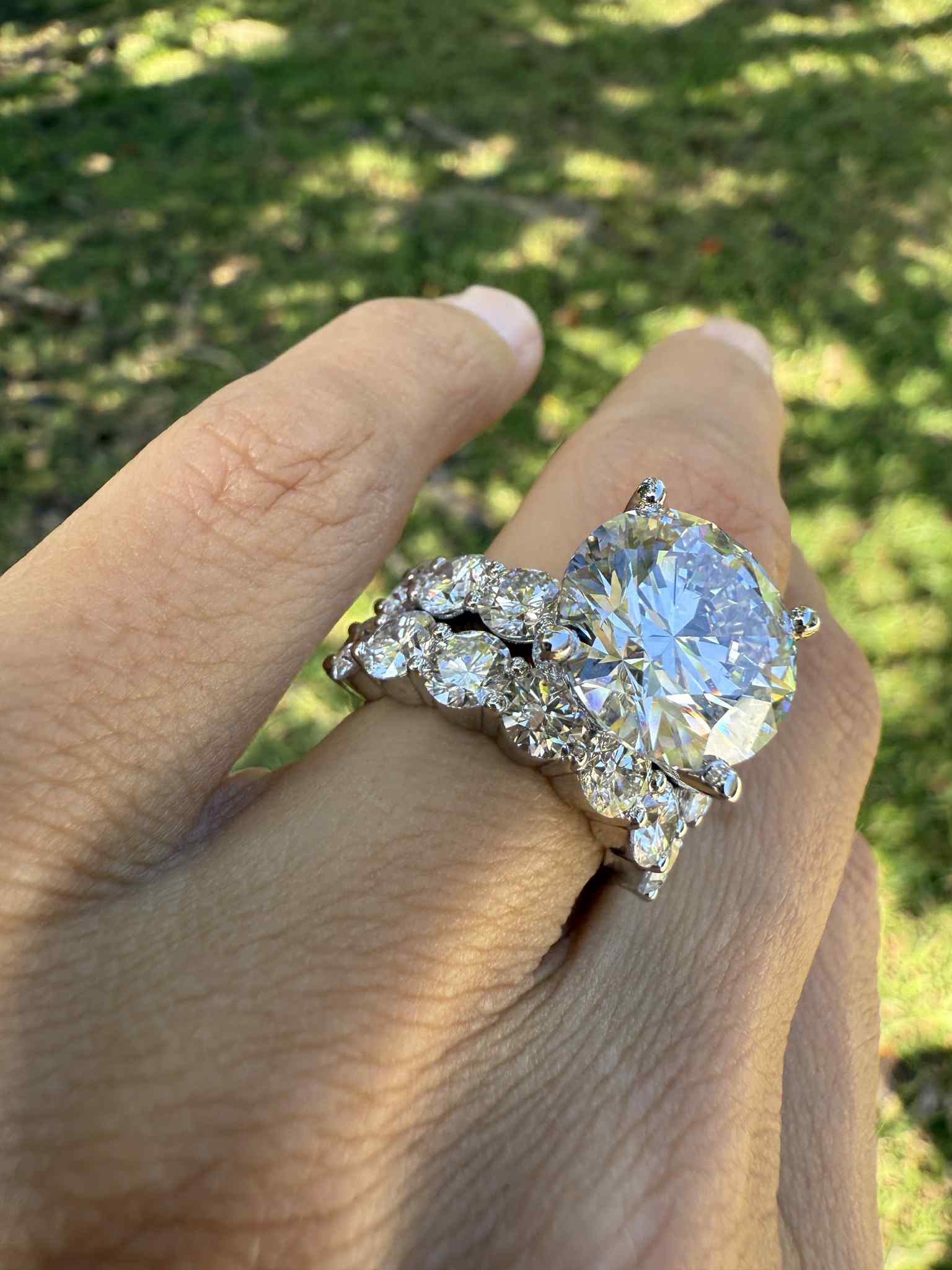 Center Stone: 8.0 CT round brilliant, F/E color / VS1 clarity minimum