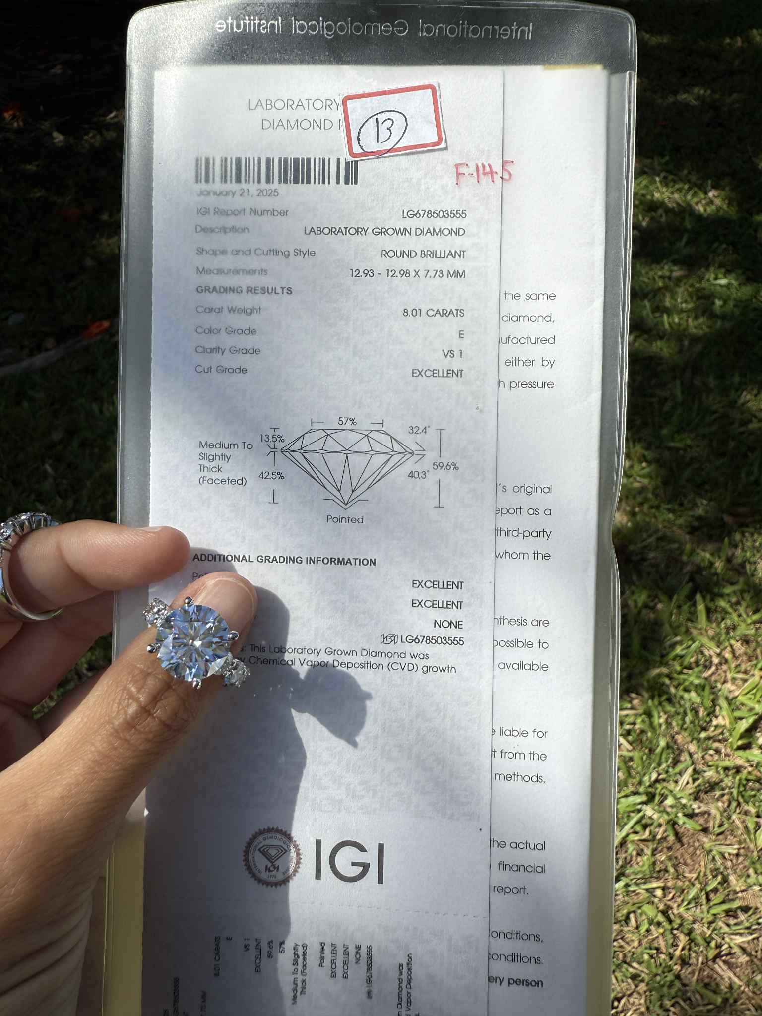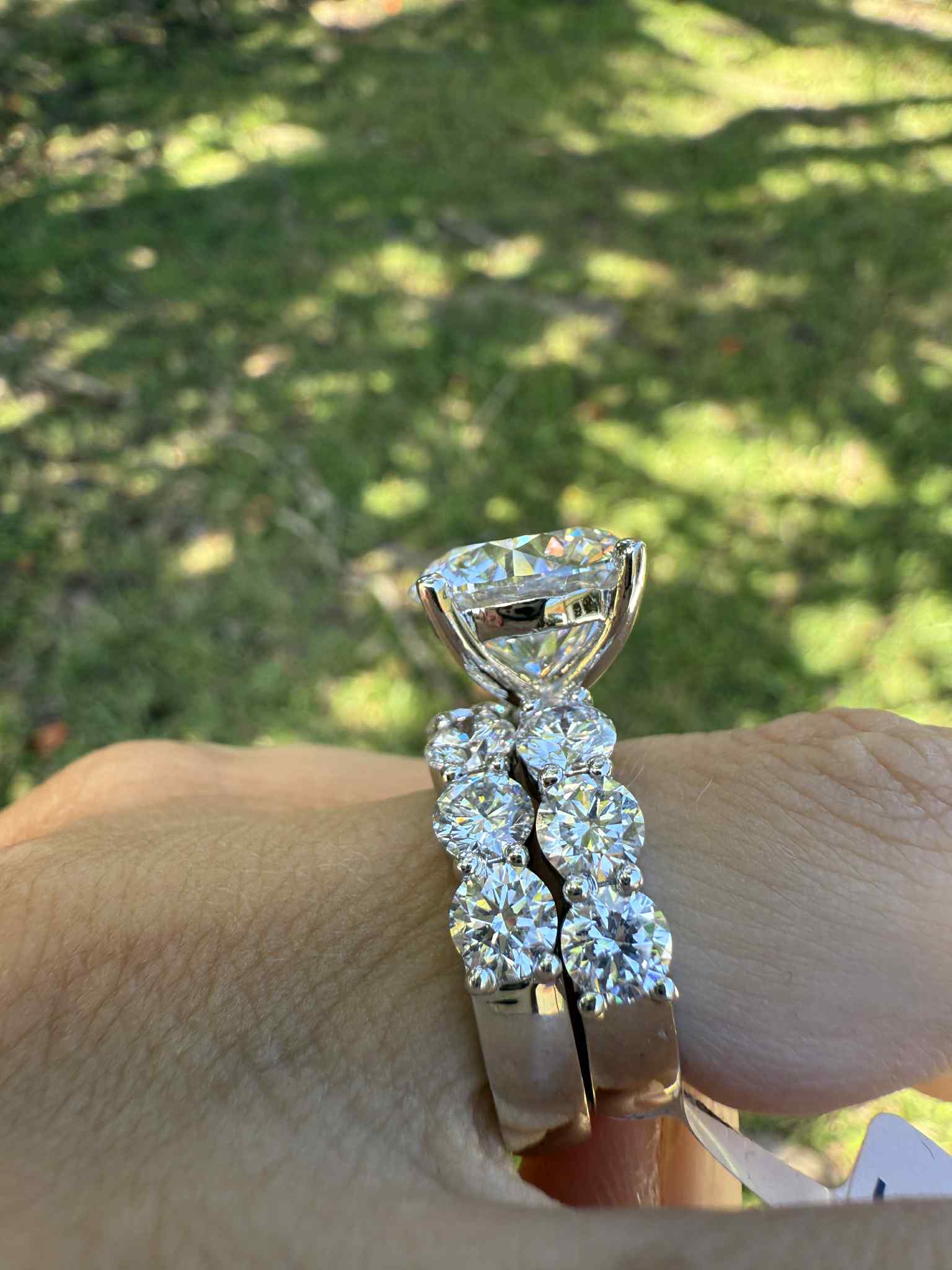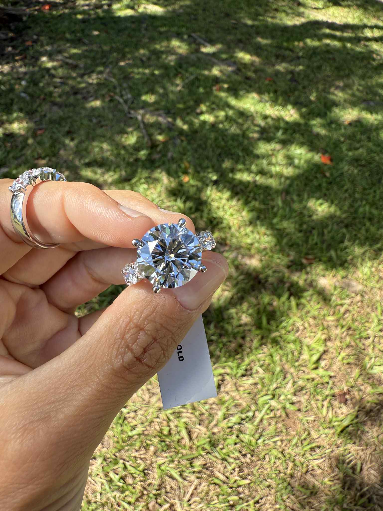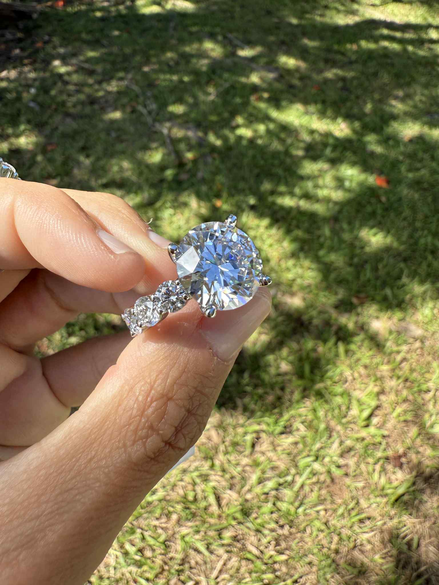 Center Stone: 8.0 CT round brilliant, F/E color / VS1 clarity minimum